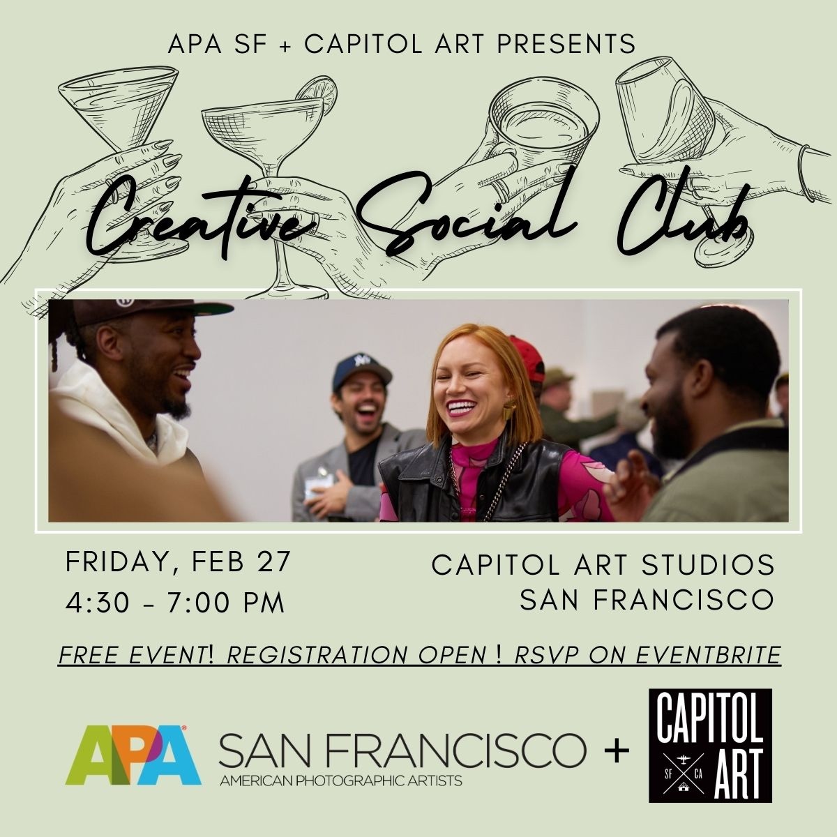 APA SF + CAPITOL ART Presents: Creative Social Club — an in-person happy hour for creatives and professionals to connect beyond business cards — to spark ideas, exchange perspectives, and build relationships that actually last.